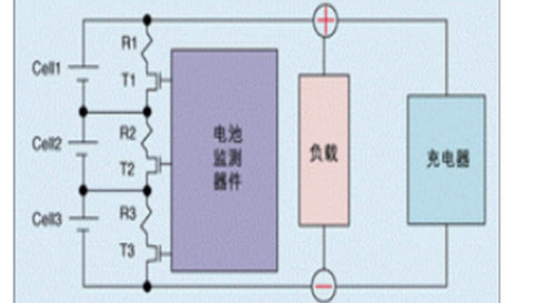 目前所用的電池組的均衡電路。Cell1和Cell3表示電池,(R1,T1到(R3,T3為均衡電路。此處假設晶體管T1、T2、T3以及電阻R1、R2和R3為電池監(jiān)測器的外部元件,實際上可以將它們集成在電池監(jiān)測器中,但考慮到面積和功耗問題,T1、T2和T3的體積必須縮小。將這些晶體管集成到芯片中可將均衡電流降低到10mA以下,延長失配電池的均衡時間。此外,為避免電池監(jiān)控器內部發(fā)熱引起A/D轉換器和模擬調整電路性能退化而產(chǎn)生錯誤測量結果,每次應當只對一個電池進行均衡。 -